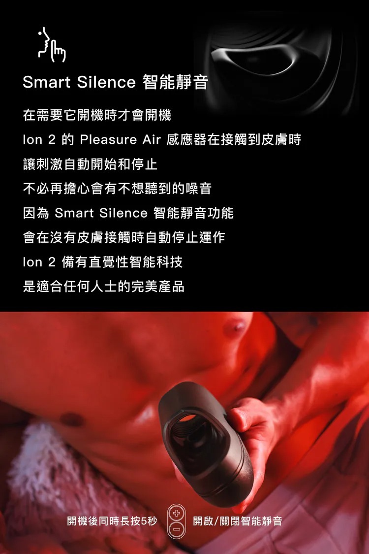 為了提升隱私性,Ion 2 配備 Smart Silence 技術,當設備未接觸皮膚時會自動停止運作,避免不必要的噪音;一旦接觸到皮膚,設備會自動啟動吸吮功能。這項功能不僅節能,還能確保在需要隱密使用時更加方便。