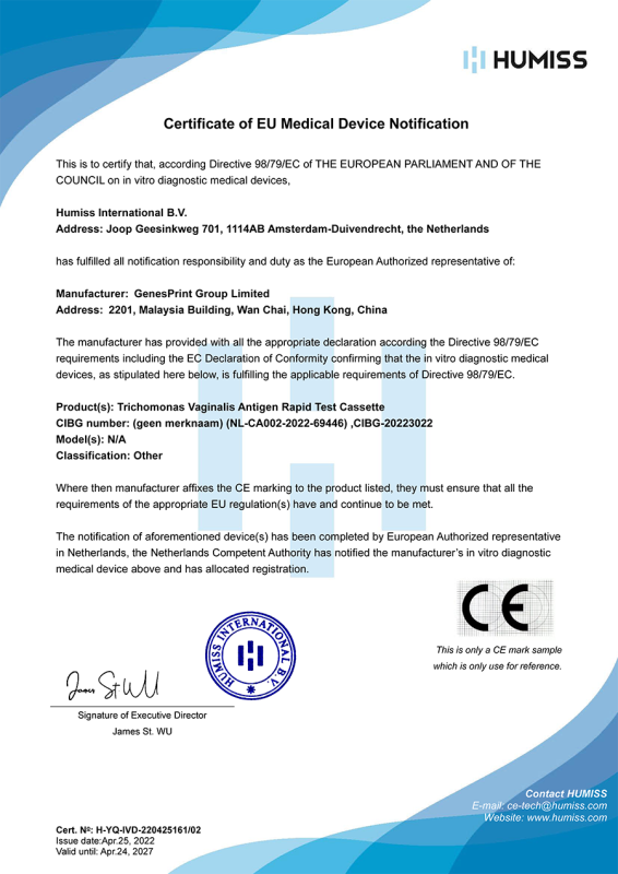 GenesPrint Trichomonas Vaginalis Antigen Rapid Test Cassette