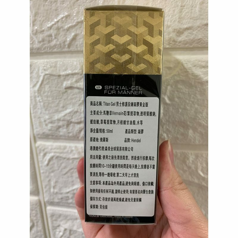 承繼Titan紅色經典版本活力保養增大軟膏全球首款熱賣後,Hendel LLC再度推出加強版本,全方面提升,更適合35歲或以上人士使用,好多用家用後感都表示有明顯改變,有歐洲顧客表示黃金裝後增加4cm-5cm,使用當中成份由專家特別挑選,加強了玻尿酸、琥珀酸、馬鞭草以及草莓果實提取物成份,具有活性物質,琥珀酸及馬鞭草針對成份能夠令血管更流通,從以達至增大的效果,非常適合長期保養的人!