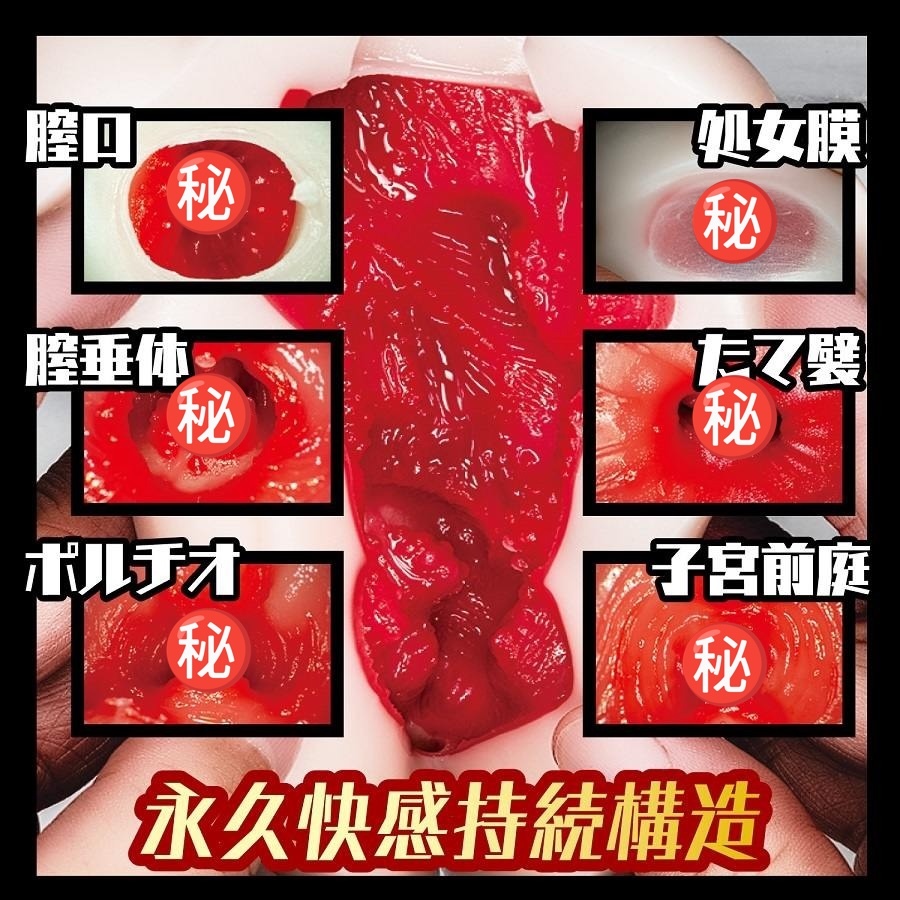 內部紋理包含縱向褶邊(たて襞)與子宮前庭(ポルチオ),提供多層次摩擦與刺激,從入口的緊縮到深處的包裹,模擬真實性愛的動態感受。
